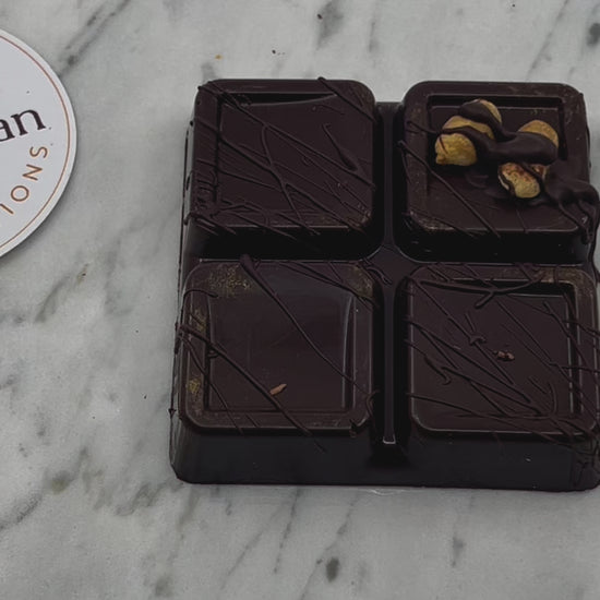 Indulge in McGowan Chocolate's handcrafted chocolate candy bars. This bar is filled with a luscious ganache made from organic peanut butter, sugar, silky cocoa butter and a touch of salt. Each bar is a work of edible art—hand-painted and decorated with care, making every piece as beautiful as it is delicious.